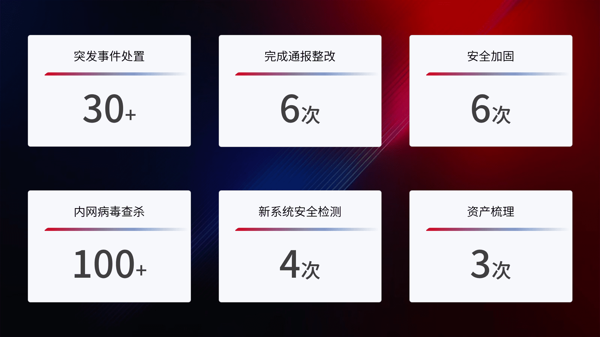 安全水平提升与事件响应:派驻经验丰富的安全工程师,,提升医院网络安全防护的整体水平;建立突发网络安全事件的处置流程,,,,提高响应速度和处置能力。。